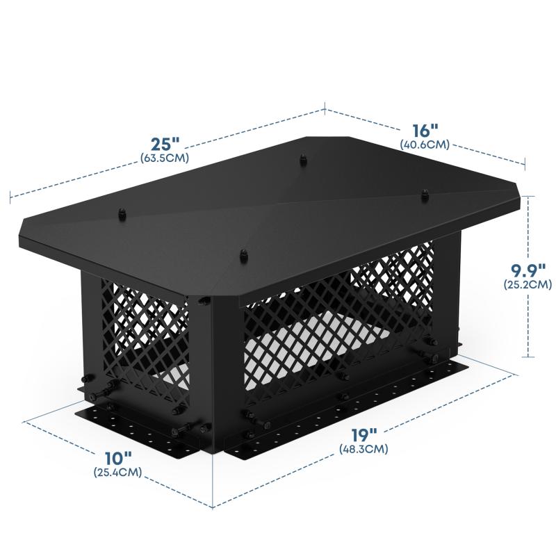 Stanbroil 10" x 19" Chimney Cap, Fireplace Chimney Cover for Outside Adjustable Bottom to Fit Existing Clay Flue Tile Sizes, Chimney Flue Rain Caps