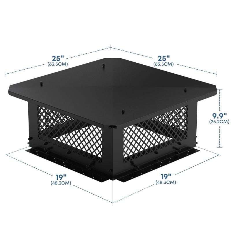 Stanbroil 19" x 19" Chimney Cap, Fireplace Chimney Cover for Outside Adjustable Bottom to Fit Existing Clay Flue Tile Sizes, Chimney Flue Rain Caps