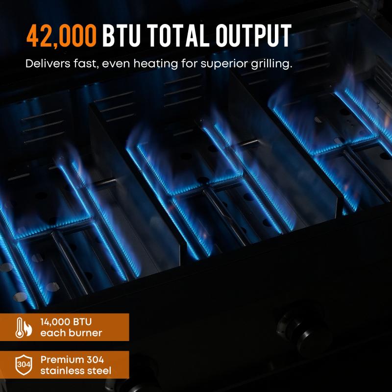 griddle brings 42,000 BTUs to your backyard. Fire it up for family