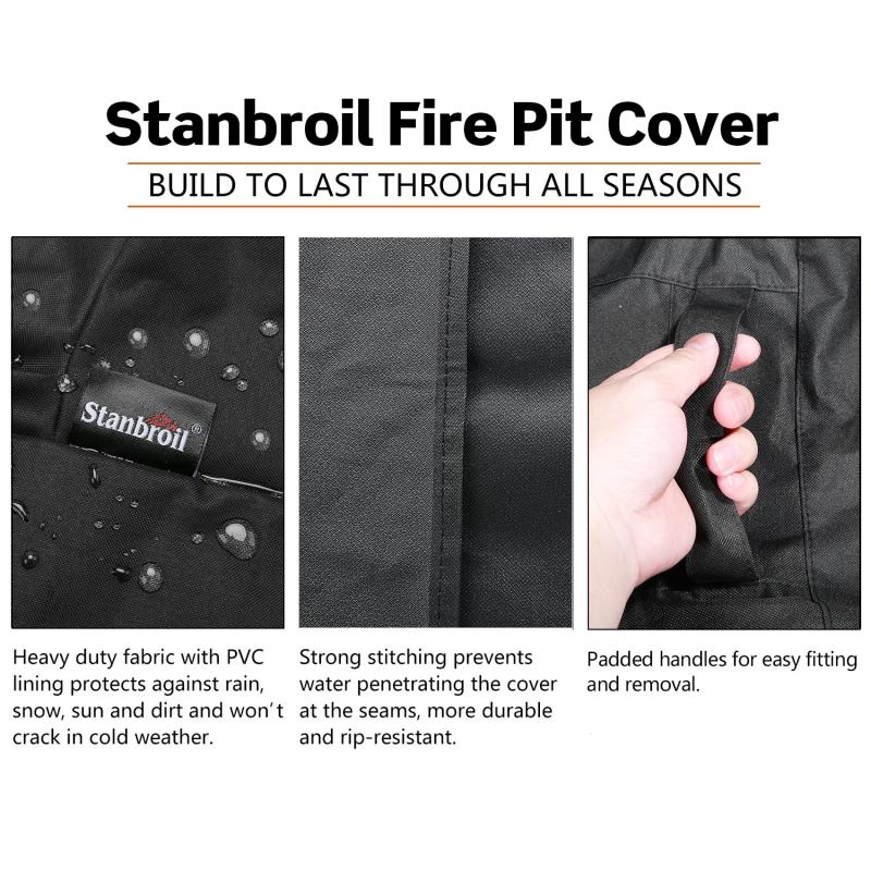 Stanbroil 50 Inch Round Fire Pit Cover, Full Coverage Fire Pit Table Cover, Patio Furniture Cover with Durable and Water Resistant Fabric, Black