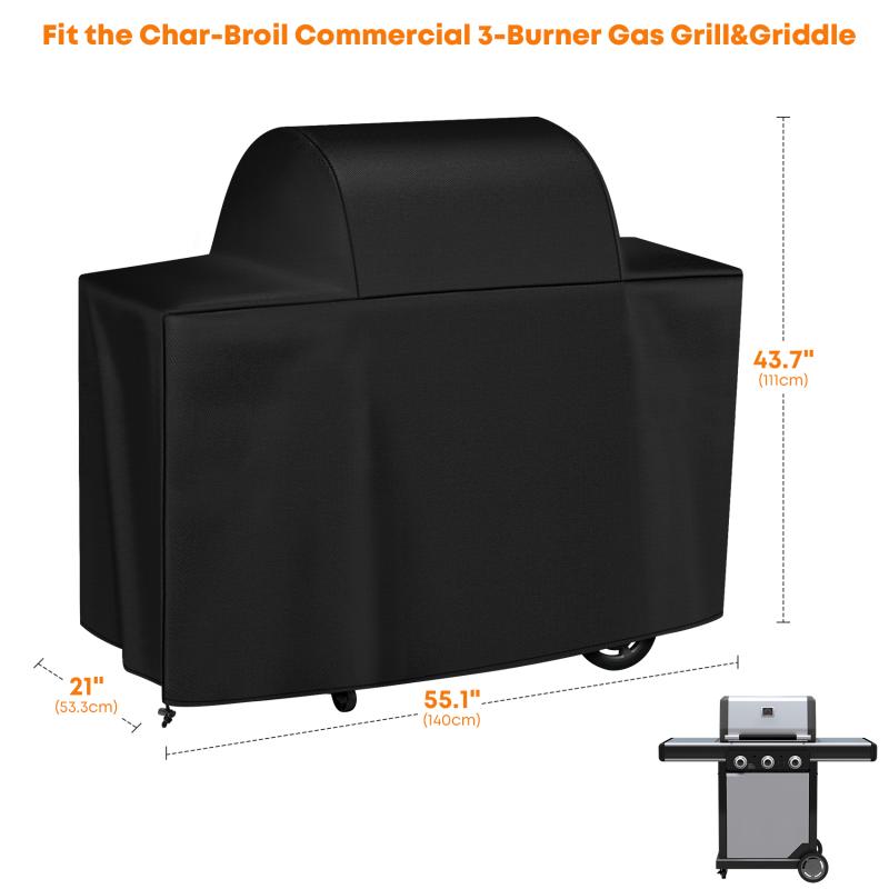 Measures 55.1"L x 21"W x 43.7"H. Fits Char-Broil Commercial 3-Burner Gas Grill&Griddle.