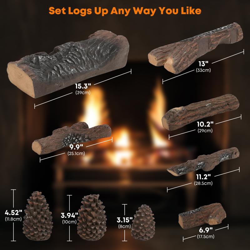 Stanbroil Large Ceramic Gas Logs, 9 Piece Set of Decoration Ceramic Wood Logs for All Types of Ventless, Gel, Ethanol, Electric, Gas Inserts, Propane, Indoor or Outdoor Fireplaces & Fire Pits
