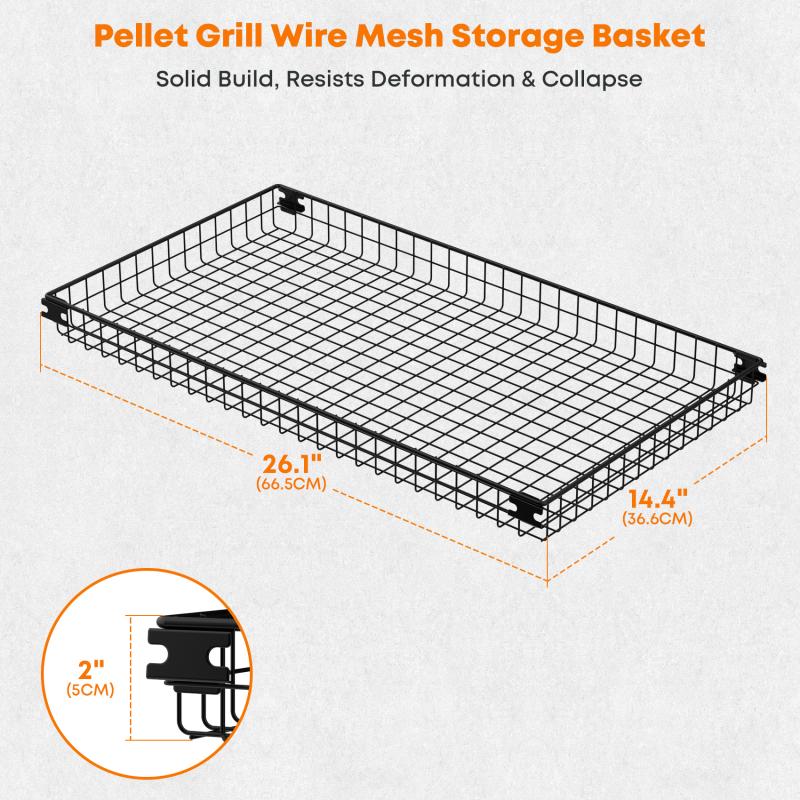The pellet grill storage basket is crafted from strong and durable high