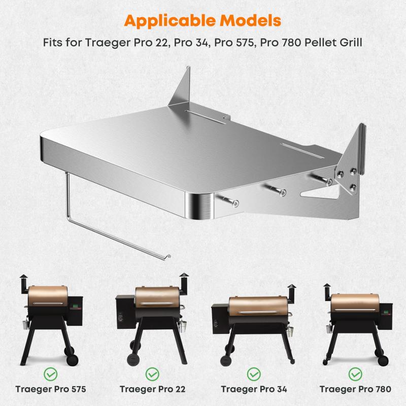 Compatibility: This grill side shelf is designed to fit Traeger Pro 22, Pro 34, Pro 575, Pro 780 pellet grills.